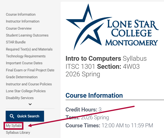 - Click the [My Syllabi] link in the lower left corner under the [Quick Search] button.